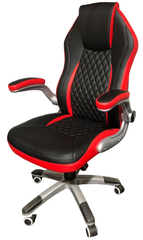 Ergonomic gaming chair with bold red and black PU upholstery, featuring flip-up padded armrests for space-saving flexibility.This gaming chair built on a durable 320mm powder-coated steel base with smooth-rolling PU casters and a 100mm Class 2 gas lift for height adjustment.This gaming chair includes a multi-tilt mechanism for reclining comfort. Compact seat size (80×65cm) suits most users. Sturdy construction supports up to 200 lbs.This gaming chair is ideal for long gaming or work sessions.